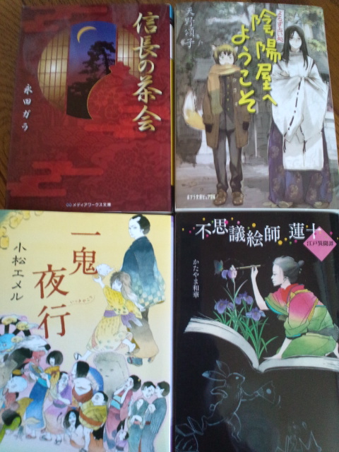 陰陽屋へようこそは、人間の陰陽師(もどき)と妖狐の少年のお話。不思議絵師蓮十は、絵師本人は人間だけど彼の描く絵が命を持つという。信長の茶会は未読ですが、信長と光秀が地獄から蘇ったという時点ですでに妖し系。